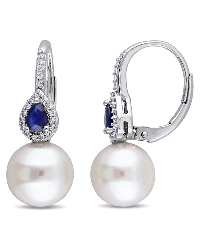 Cultured Pearl Earrings Lab-Created Sapphires Sterling Silver