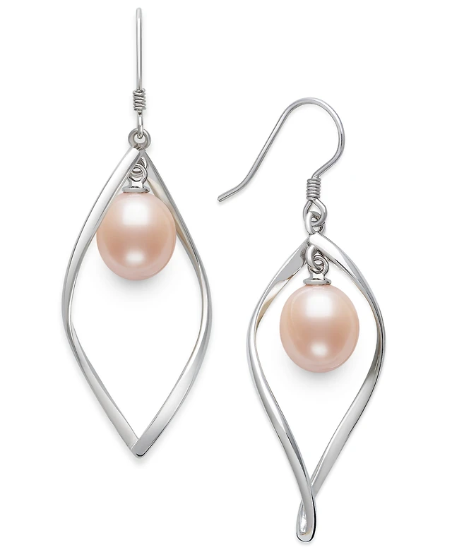 Baroque Cultured Pearl Dangle Hoop Earrings Sterling Silver