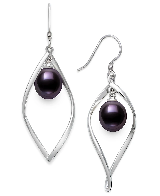 Tahitian Cultured Pearl Drop Earrings Sterling Silver