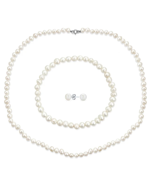 Cultured Pearl Alternating Strand Bracelet Sterling Silver 7.5"