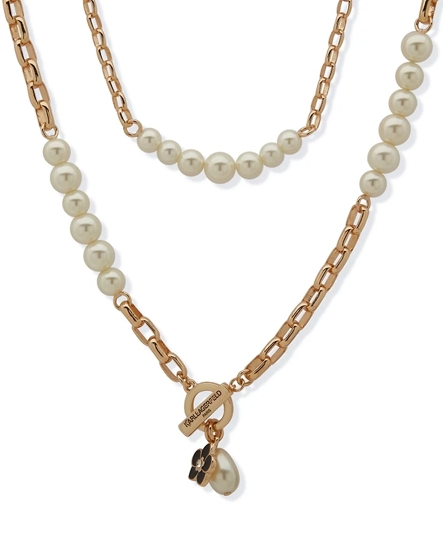 Karl Lagerfeld Paris Gold-Tone Pave, Imitation Pearl & Curb Chain 36" Strand Necklace