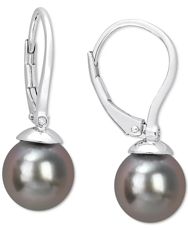Macy's Cultured Tahitian Pearl (10mm) & Diamond (1/6 ct. t.w.) Earrings in Sterling Silver