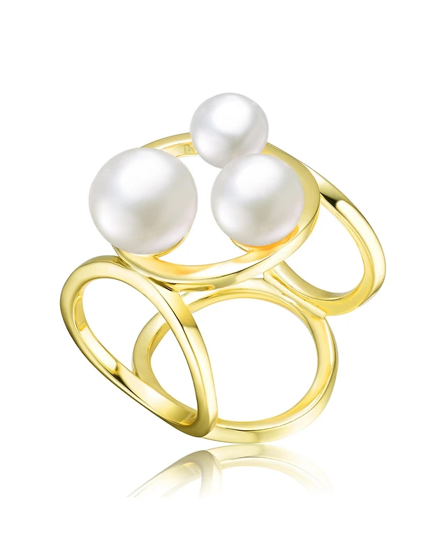 Sterling Silver 14k Gold Plated with Freshwater Pearls Ball Ring
