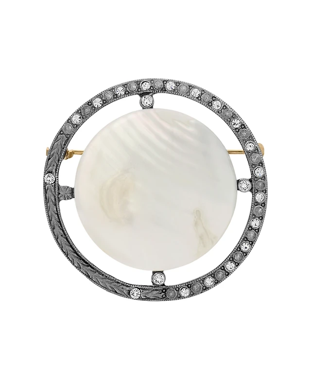 2028 Silver Tone Crystal Pink Cultured Mother of Pearl Brooch