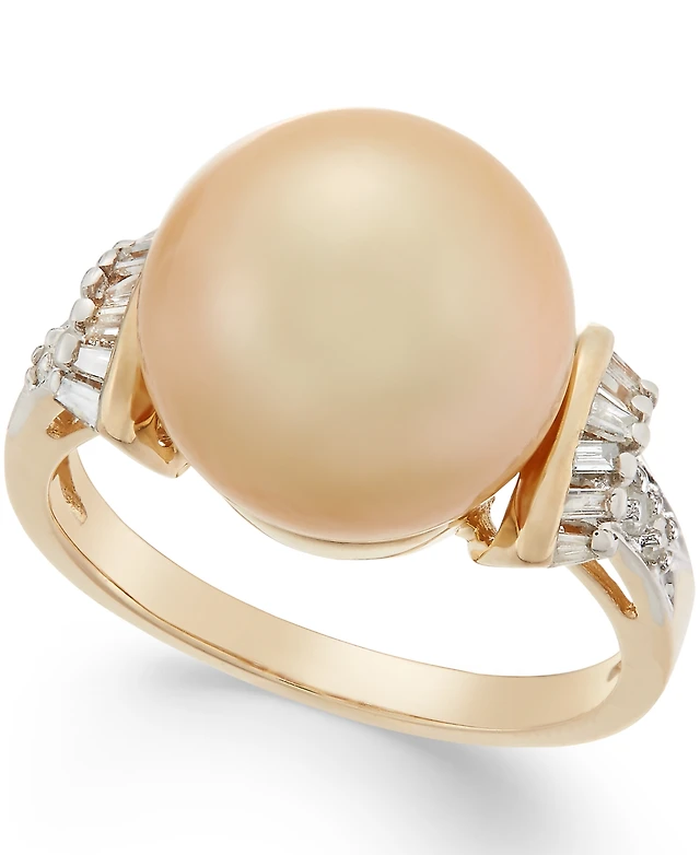 Effy Collection Freshwater Pearl (9mm) & White Diamond (1/10 ct. t.w.) Ring in Sterling Silver
