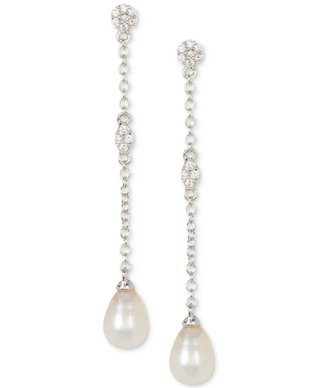 Macy's White Cultured Pearl and Cubic Zirconia Bar Drop Earring