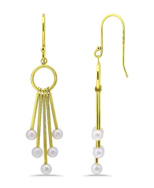Sterling Silver 14K Gold Plated with Freshwater Pearl Dangle Earrings