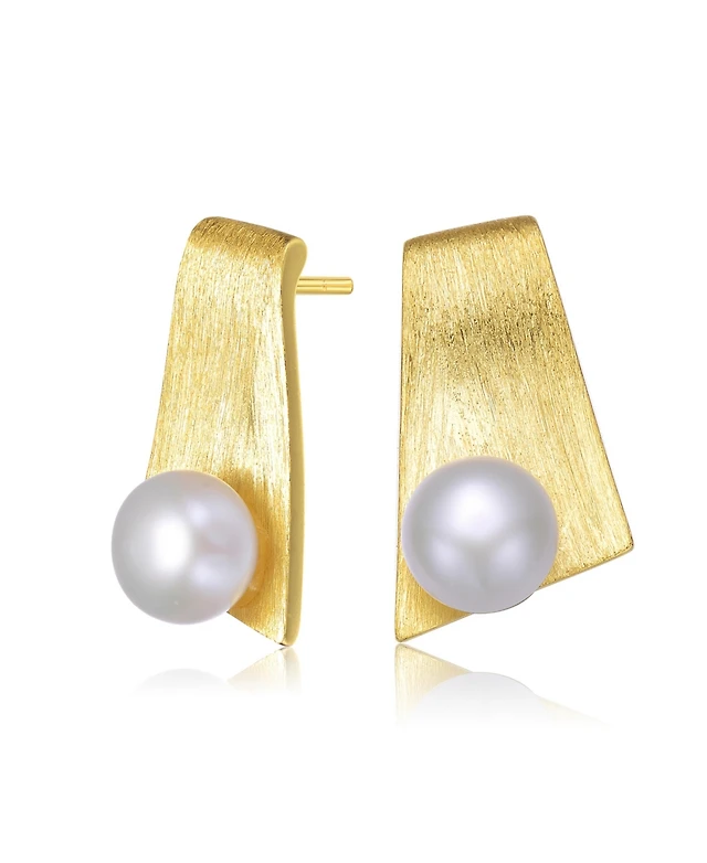 Stylish Sterling Silver with 14K Gold Plating and Genuine Freshwater Pearl Dangling Earrings
