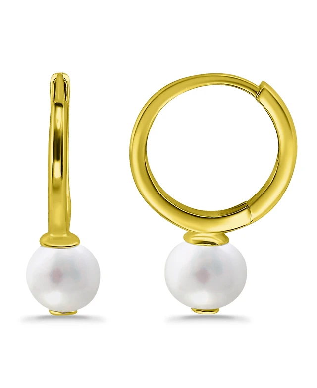 Sterling Silver Gold Plated with Genuine Freshwater Pearl Hook Earrings