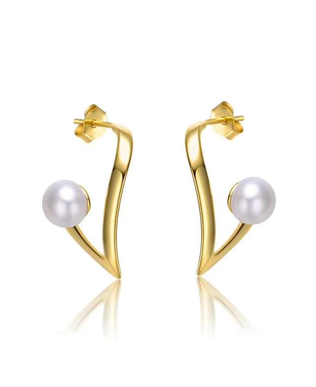 Very Stylish Sterling Silver with 14K Gold Plating and Genuine Freshwater Pearl Curvy Dangling Earrings