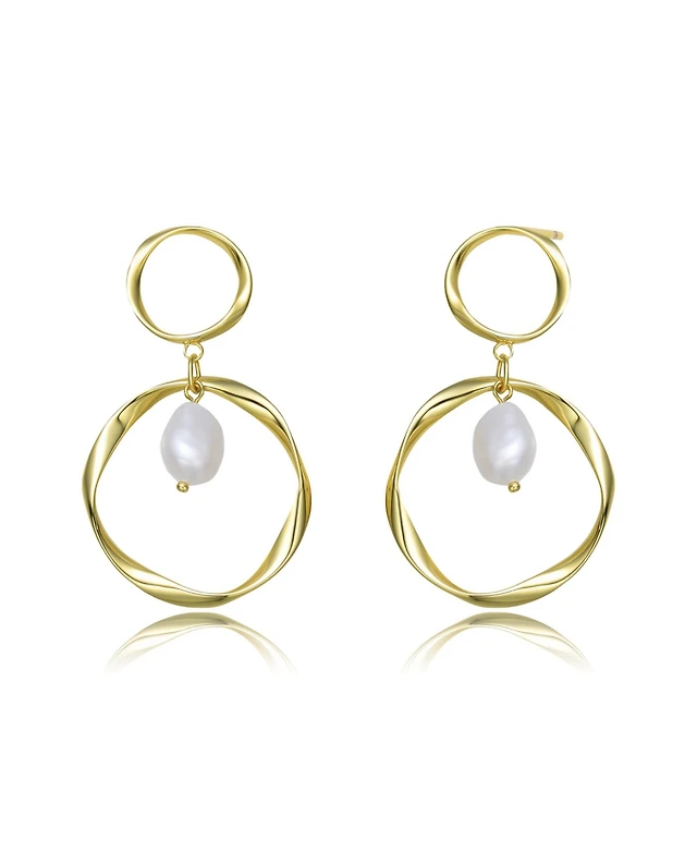 Sterling Silver 14K Gold Plated with Genuine Freshwater Pearl Unique Earrings