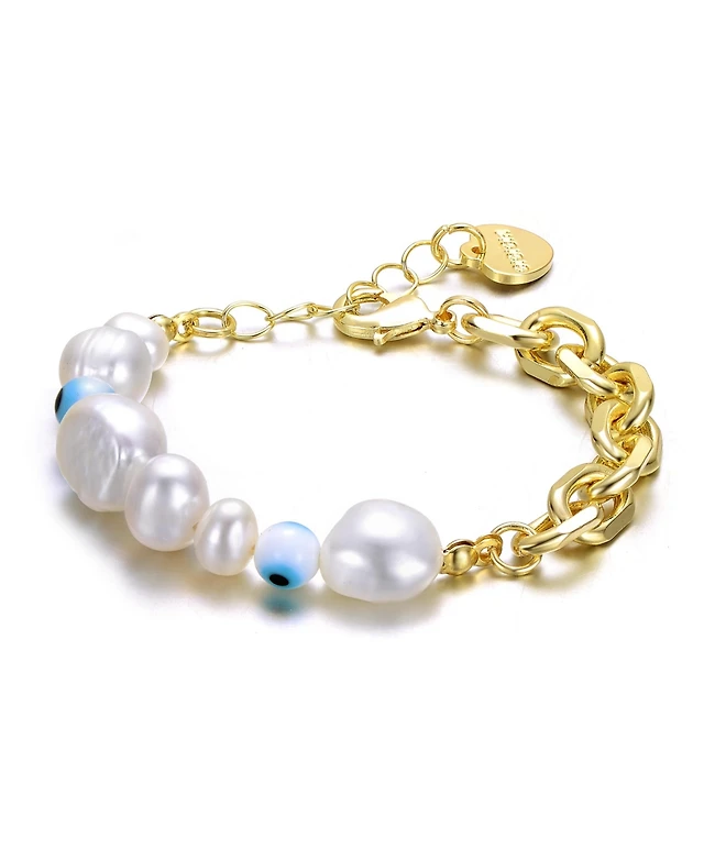 Sterling Silver 14k Gold Plated White Freshwater Pearl Paperclip Link Bracelet