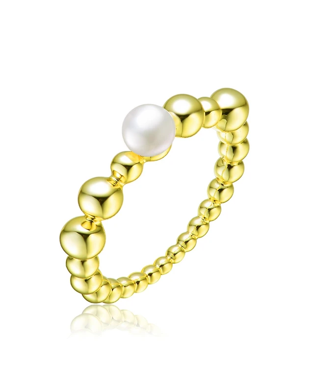 Sterling Silver 14K Gold Plated with Genuine Freshwater Pearl Contemporary Ring