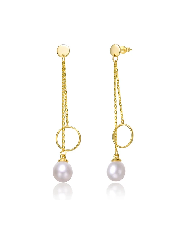 14k Yellow Gold Plated with Free-Form Baroque Genuine Freshwater White Pearl Pendant Cable Layering Necklace in Sterling SIlver