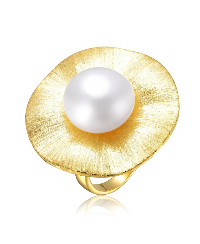 Sterling Silver with 14K Gold Plated 6-6.5MM freshwater Pearls Adjacent Triangles Design Geometric Ring