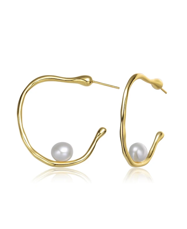 Elegant Sterling Silver & 14K Gold-Plated Ribbon Half-Hoop Earrings with White Freshwater Pearl Drops