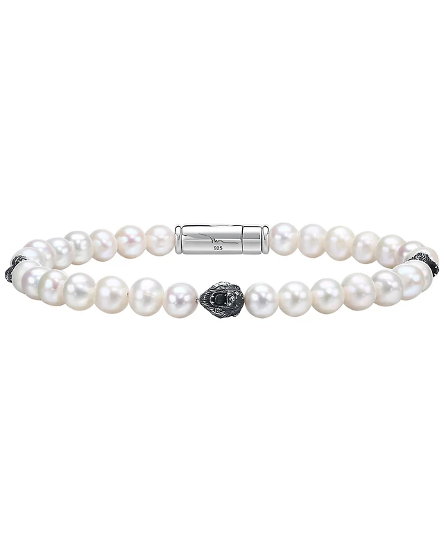 Bulova Marc Anthony Men's Freshwater Pearl & Lion Beaded Bracelet in Sterling Silver-Plate, BVB1161-wswprl