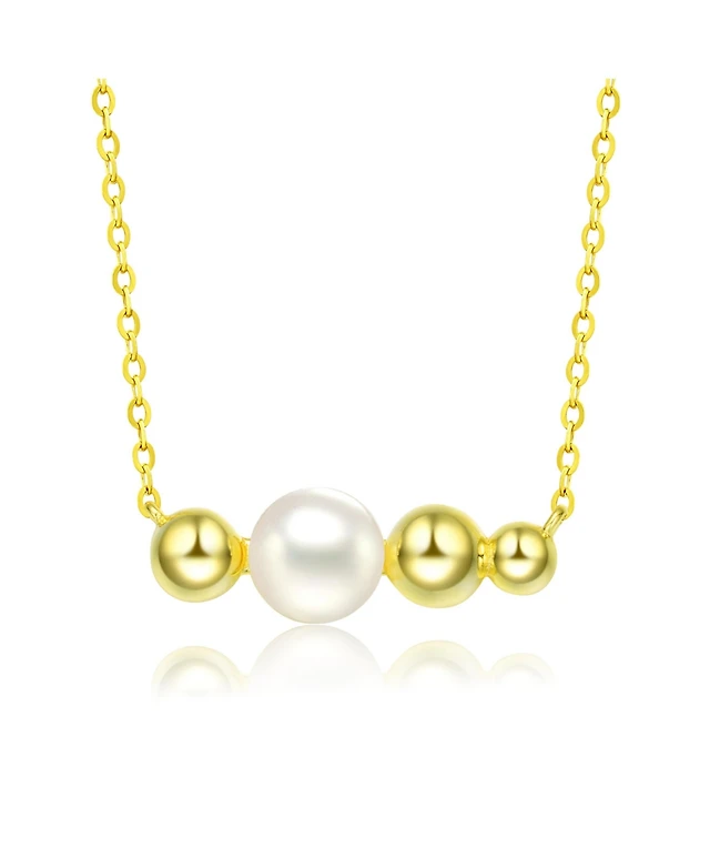 Classy Sterling Silver 14K Gold Plating and Genuine Freshwater Pearl Station Necklace