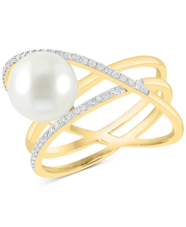 Cultured South Sea Pearl (10mm) & Diamond (1/2 ct. t.w.) Swirl Huggie Hoop Earrings in 14k Gold