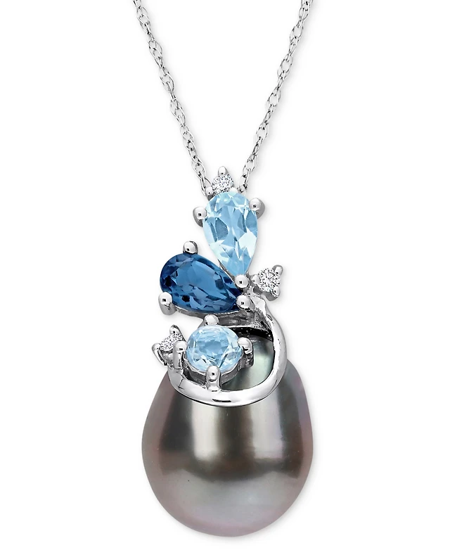 Blue Lagoon® by Mikimoto 7.5-8.0mm Akoya Cultured Pearl Strand and Earrings Set in 14K White Gold with Diamond Accent