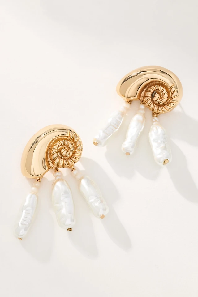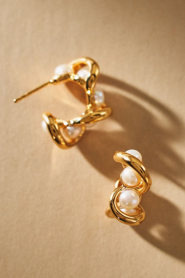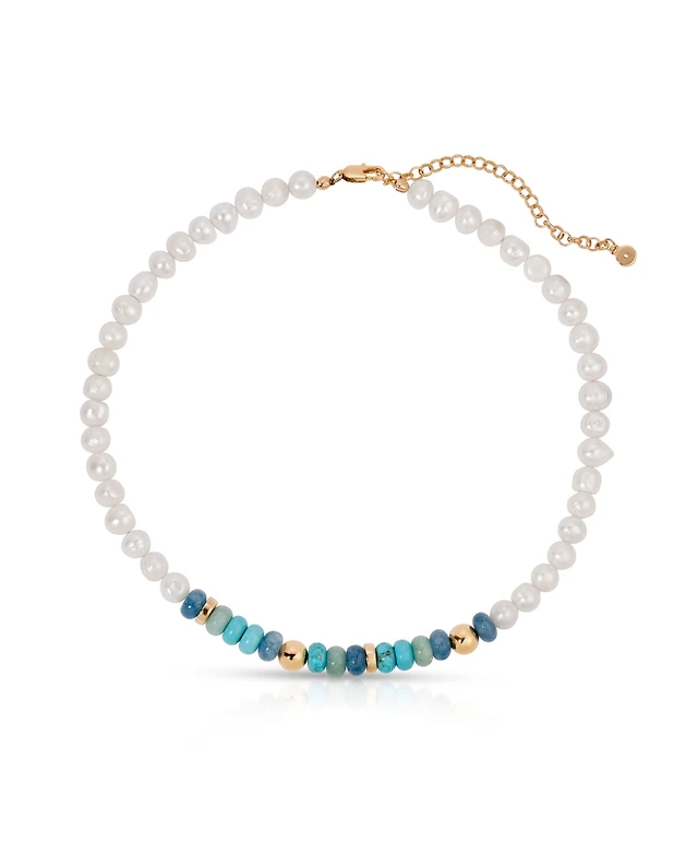 Ettika Beach Day Pearl and Blue Gemstone Hoop Earrings