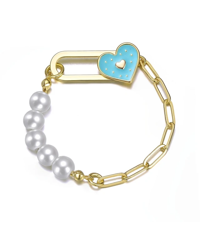 GiGiGirl 14K Gold Plated Bracelet with Pearls and Enamel Flower Clasp