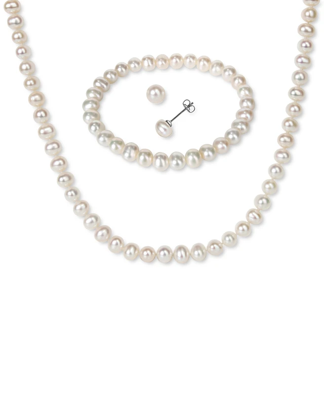 3-Pc. Set Cultured Freshwater Pearl (6-7mm) Bracelet, Necklace & Stud Earrings