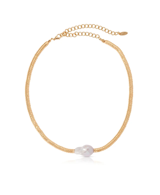 Ettika Baroque Cultured Freshwater Pearl Pendant 18K Gold-Plated Snake Chain Necklace