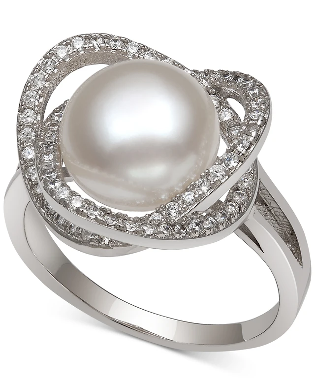 Cultured Freshwater Pearl (9mm) & Cubic Zirconia Statement Ring in Sterling Silver
