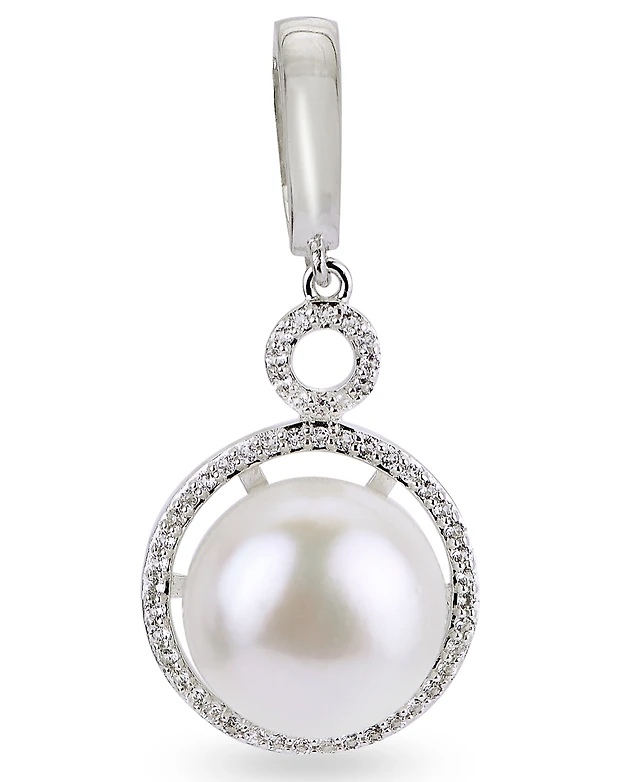 Cultured Freshwater Pearl (8mm) and Diamond Accent Pendant Necklace in 14k Gold