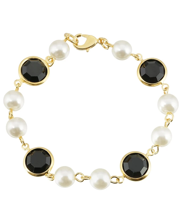 2028 Gold-Tone Imitation Pearl with Channels Link Bracelet