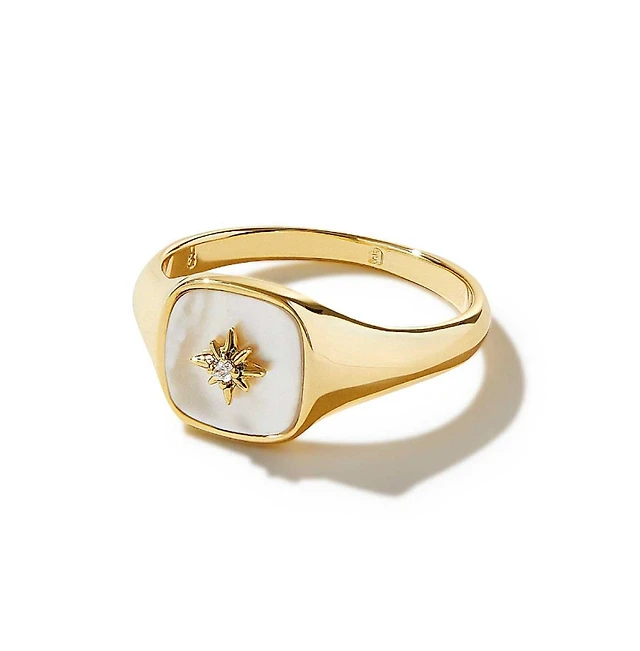 Ana Luisa - Gold Signet Ring Amara Mother of Pearl
