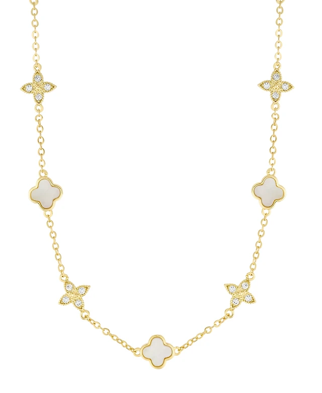 GiGiGirl 14K Gold Plated with Mother Of Pearl & Clear Cubic Zirconia Cat Pendant Necklace For Kids