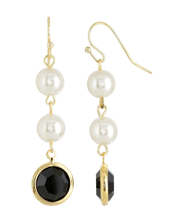 Jessica Simpson Womens Evil Eye Dangle Earrings - Gold-Tone Evil Eye Earrings with Pearl and Rhinestones