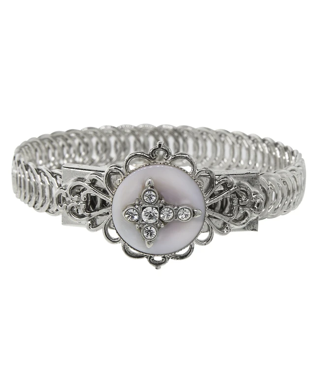Unwritten Cubic Zirconia and Mother of Pearl Heart Lock and Key "Mama" Bangle Bracelet