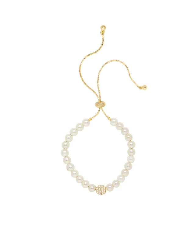Macy's 1/3 Cttw 4mm Round Cubic Zirconia Center Stone 6mm + 5mm Imitation Pearl on Bypass Band Ring