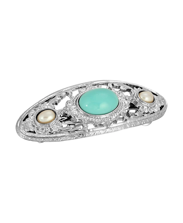 Women's Silver-Tone Imitation Pearl Stone Barrette