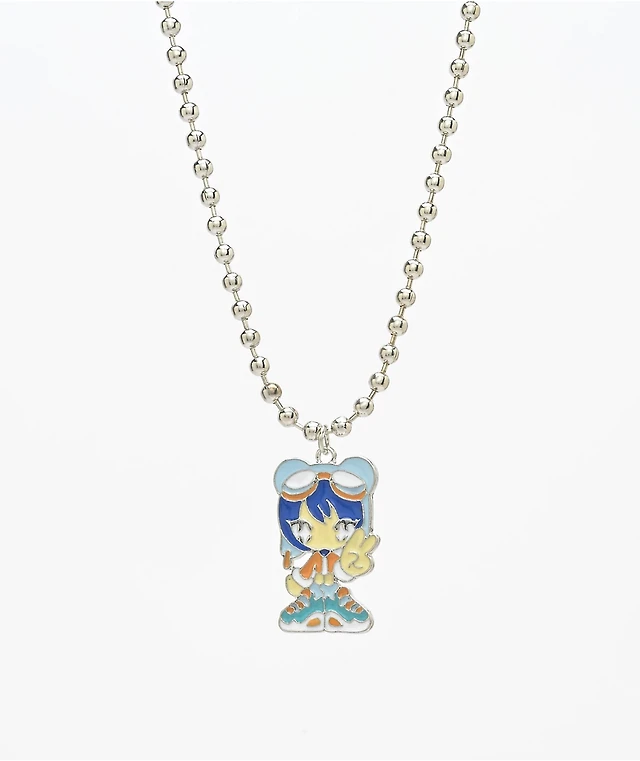 Stone + Locket Chibi Girl Silver Pendant Necklace