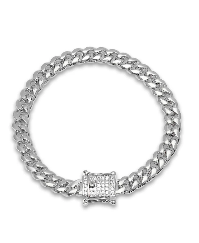 Steeltime Men's Stainless Steel Wheat Chain and Simulated Diamonds Link Bracelet