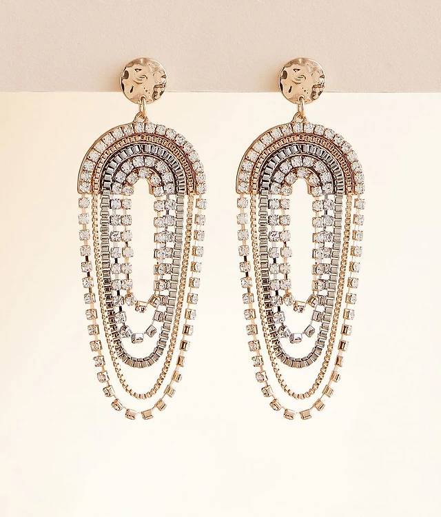 Horizontal Bar with Chain Drop Ends Front/Back Earrings in 14K Gold