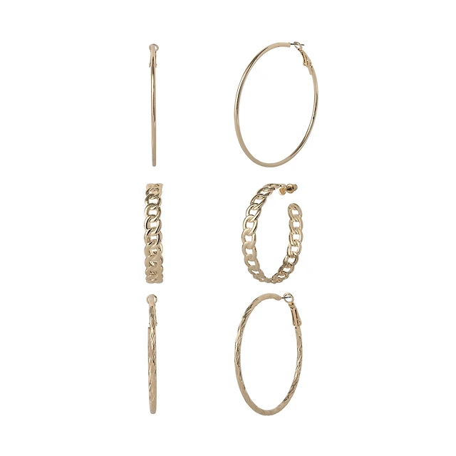 Jessica Simpson 3-Piece Hoop and Chain Hoop Earring Set in Gold-Tone