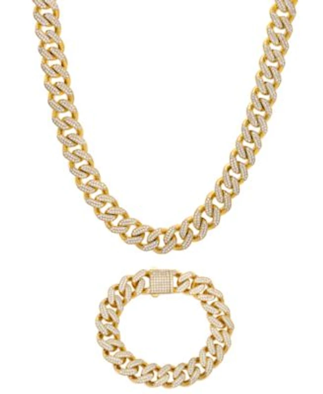 Men's Cubic Zirconia Curb Link 24" Chain Necklace in 24k Gold-Plated Sterling Silver