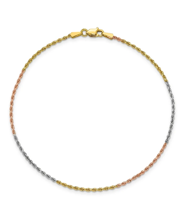 Rope Chain Anklet in 14k Yellow, Rose and White Gold