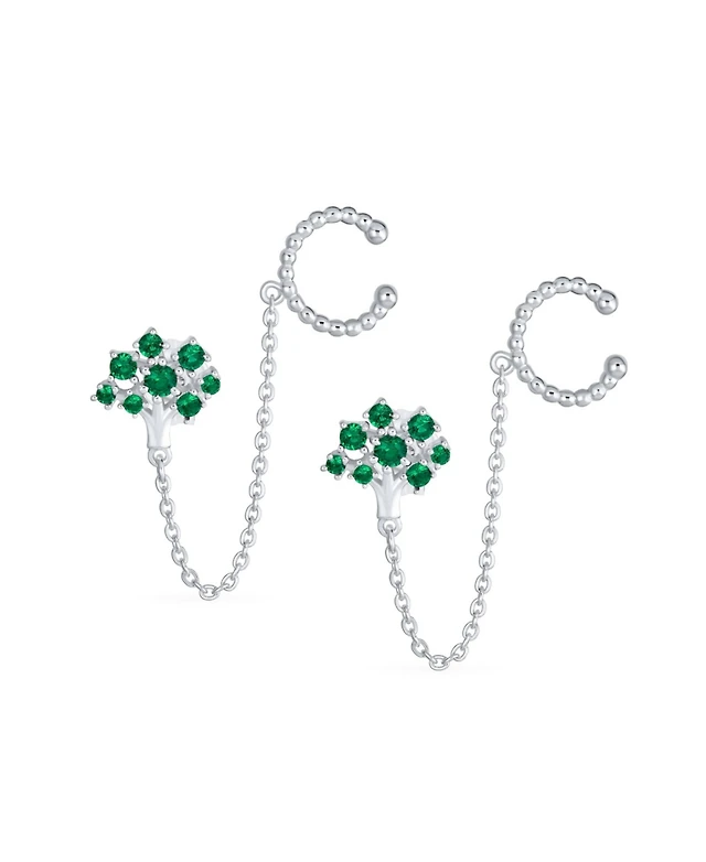Bling Jewelry Geometric Square Pyramid Chain Cartilage Ear Cuff Wrap Earring Pave Cz Stud Helix Earring Stud Set .925 Sterling Silver