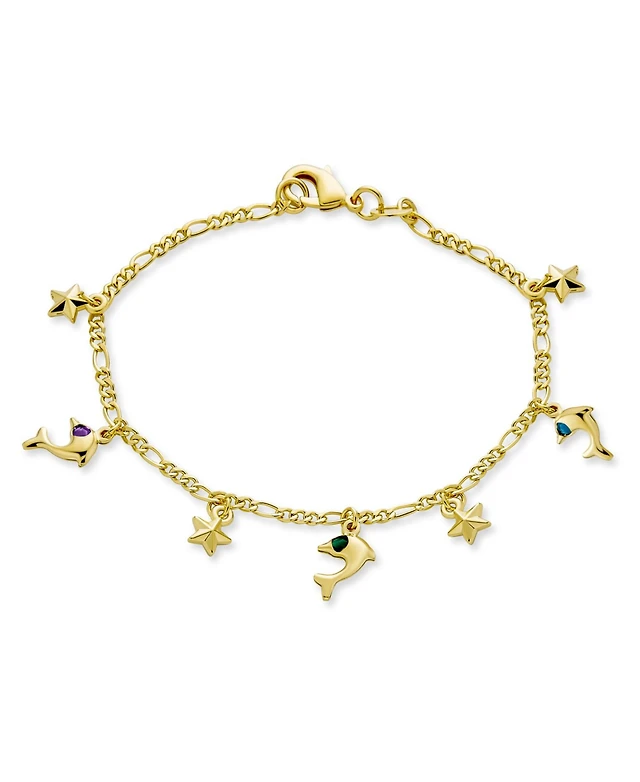 Lily Nily Girls Blue Enamel Evil Eye and Cubic Zirconia Bezel Station Chain Link Bracelet in 14K Gold over Sterling Silver