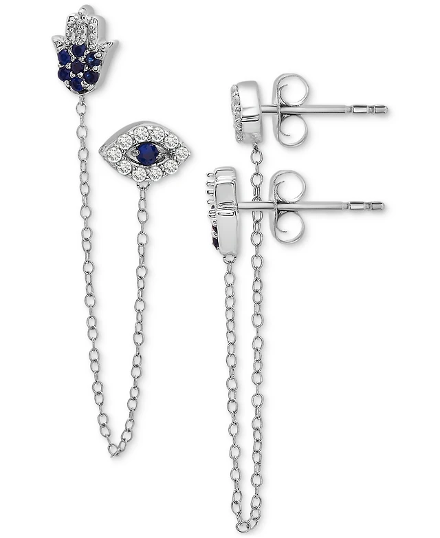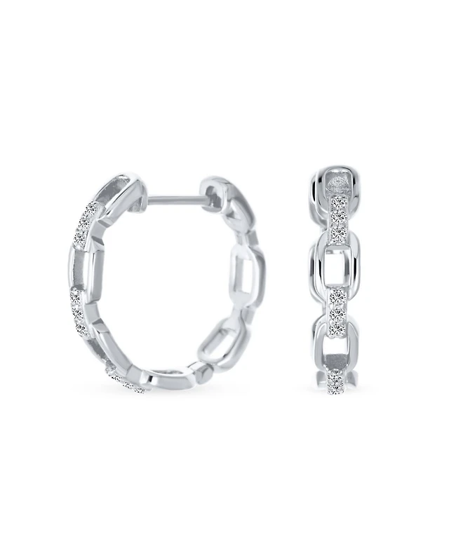 Bling Jewelry Geometric Cartilage Plain Band With Two Chains Ear Warp Cuff Cz Cubic Zirconia Stud Lobe Earring Rose Gold Plated .925 Sterling Silv