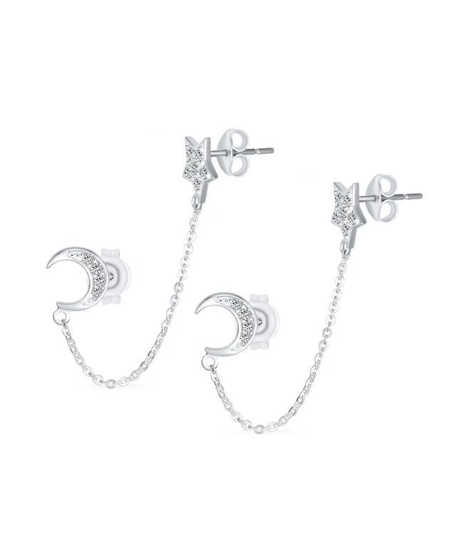 Bling Jewelry Celestial Moon and Star Pierced Cartilage and Ear Lobe Stud Earrings Sterling Silver