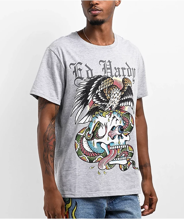 Ed Hardy Dragon Skull Black Thermal Long Sleeve T-Shirt
