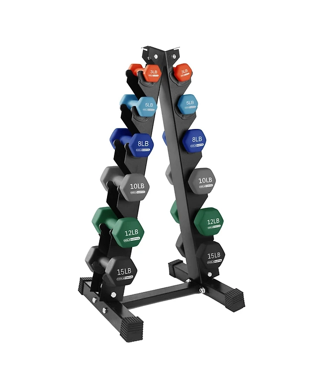 HolaHatha 3, 5, 8, 10 & 12 Pound Neoprene Dumbbell Weight Set with Storage Rack