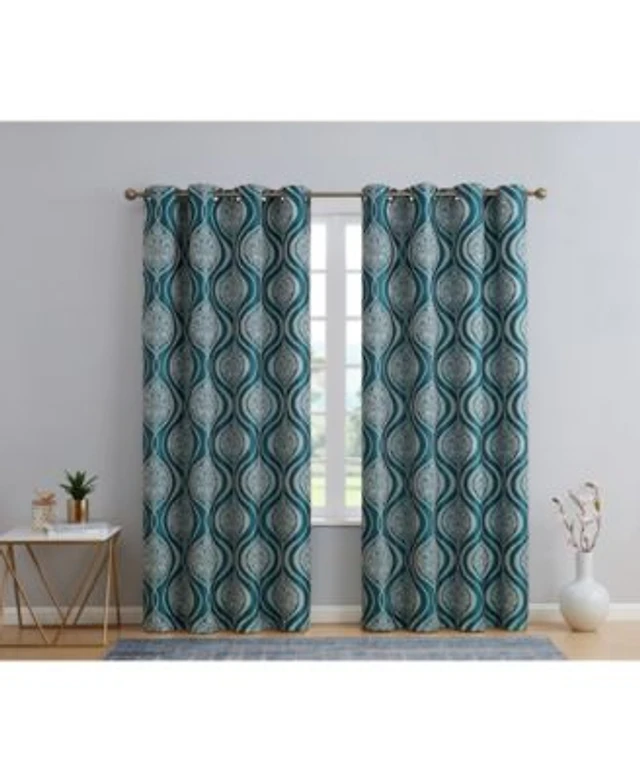 Kate Aurora Coordinating 4 Piece Geometric & Solid Curtain Set - 38 in. W x 96 L, Aqua